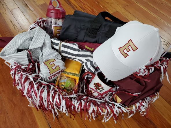 Wow, you'll need some muscles to carry this one! What a great addition to your ESJ tailgating and game experience. This fun-filled Boosters Basket is perfect for the ultimate Eagles fan. The basket houses all kinds of E logo-embellished items, including a men's stripe polo, a women's hoodie, maroon pack & go rain jacket, golf umbrella, Christmas ornament, travel blanket, Tervis water bottle, glory cafe mug, and two stadium chairs. Rounding out this incredible basket is an ESJ hat and two pom poms. GO EAGLES! Many thanks to our incredible Boosters.